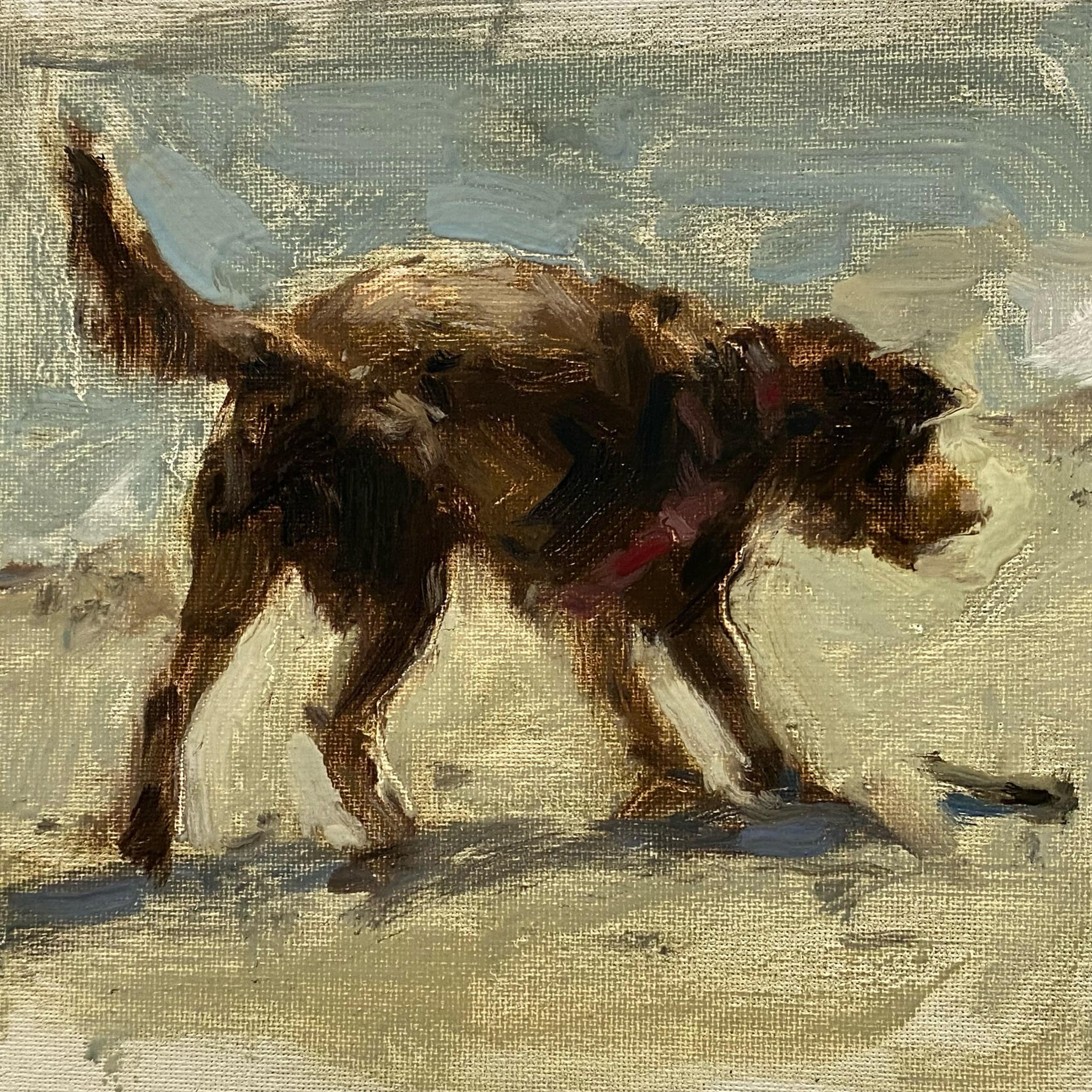 I want to capture in paint the emotion held within the figure, the truth expressed thru unconscious gesture. There is a chain of voyeuristic observation: the unaware subject, the painter, the viewer. Brief and humble moments are elevated, validated as we bear witness.