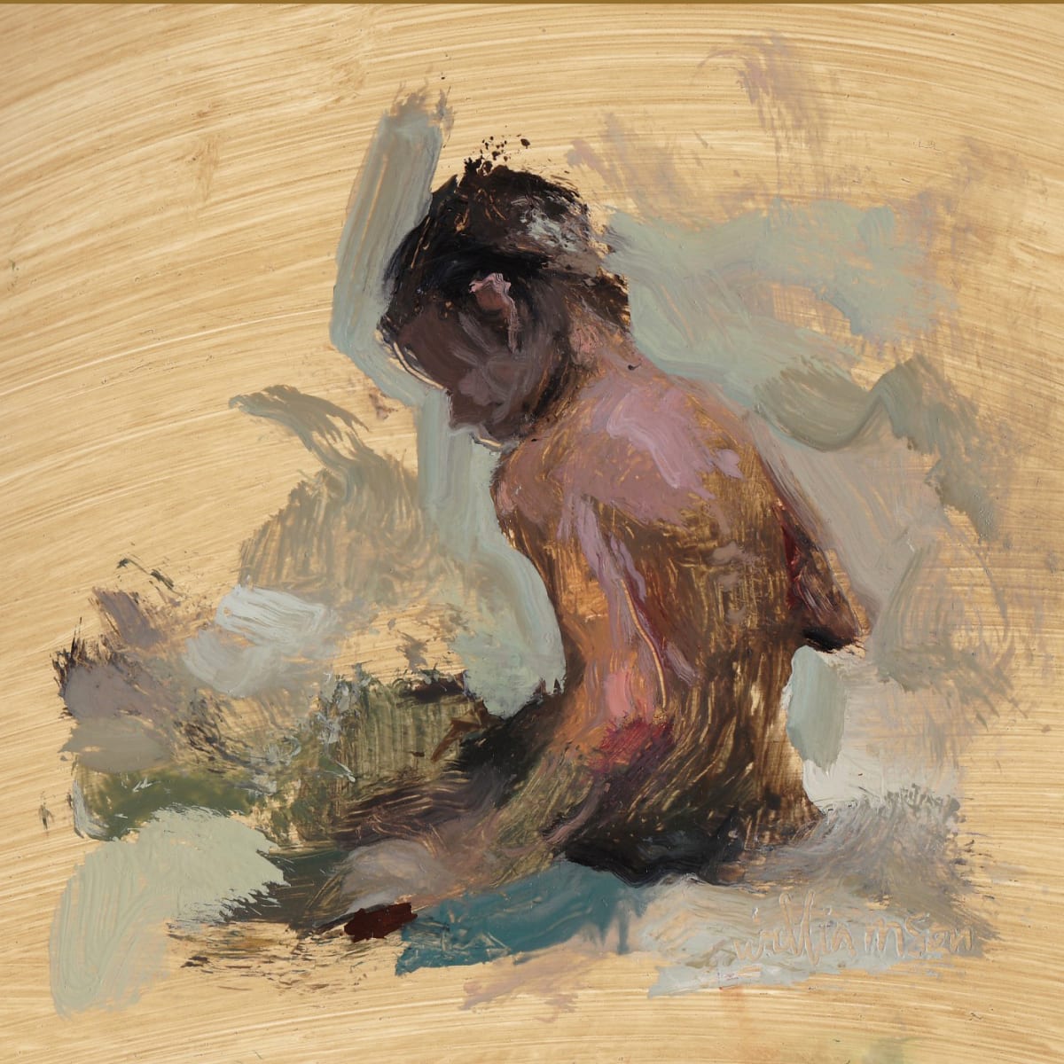 "This beachy series was created from images captured on a camping trip this month. I had so much fun pushing myself to use hits of pure colour and keep my brushstrokes brave and loose. One girl is more confident, offering support and guidance to the other."