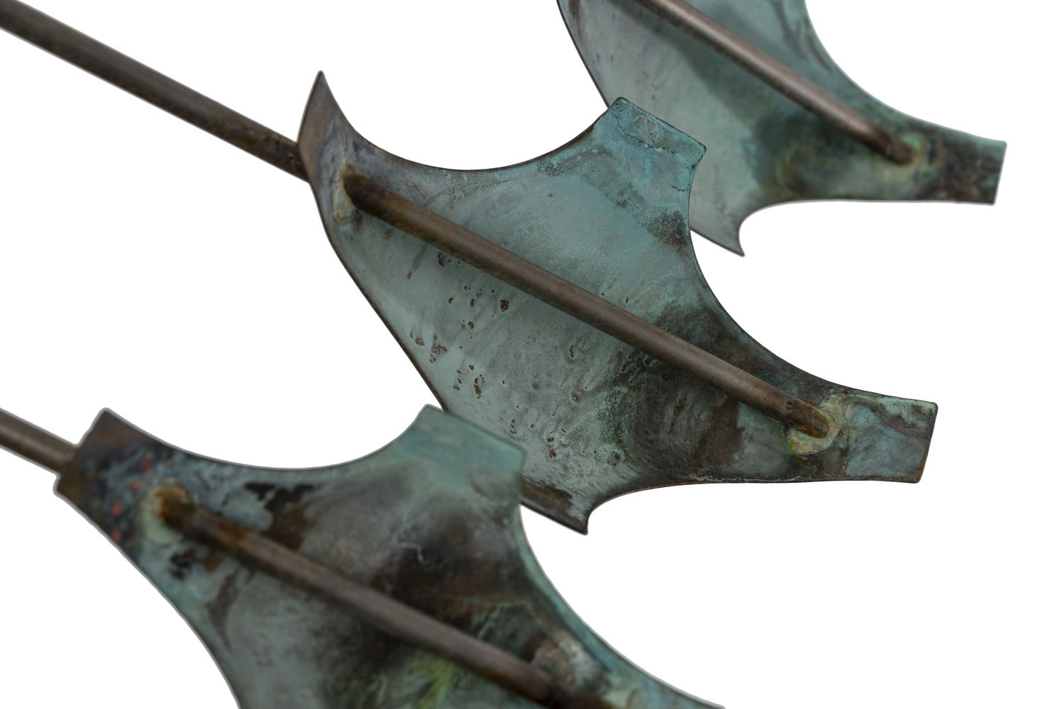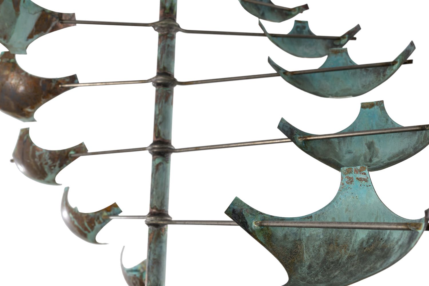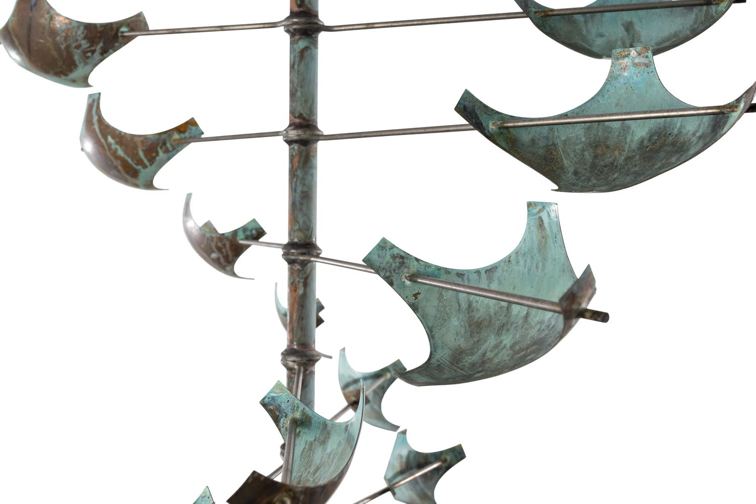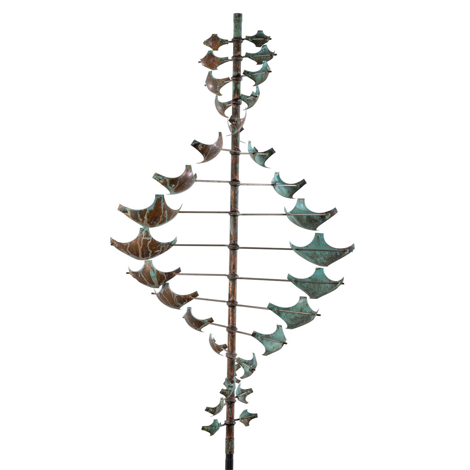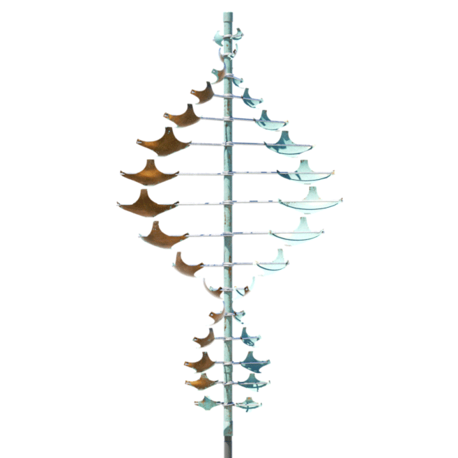 The sculptures are fabricated from copper, steel and stainless steel that provide beauty and strength. Each Wind Sculptureβ„’ is secured against theft and rests on a sealed ball bearing at the top of a vertical rod.Β