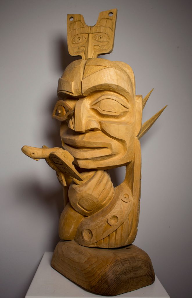 In October of 2001 Tom was bestowed the name âGhaiaanookâ by Chief Frank Baker. The name means âgreat carverâ. For a non-native artist, there can be no higher honor. In June 2003, a retrospective of Tomâs work going back to the 1970â˛s was exhibited at the ArtSpring center on Salt Spring Island. The show included paintings, sculpture, wood and whalebone carvings, model canoe replicas and much more. Almost all of the works were on loan from private collectors for the two-week exhibit.