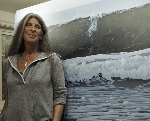 My paintings of oceans are generally large format.  The size of the canvas allows me to feel fully immersed in the experience of the sea while I am working.  The ocean enthrals me and painting it challenges me in a way that nothing else can.  It is enchanting and beautiful.  The nature of the sea is to be in perpetual motion and so to capture the moment I am seeking I use photography as a reference for my work.  The paintings have evolved over the years although my method has remained constant.
