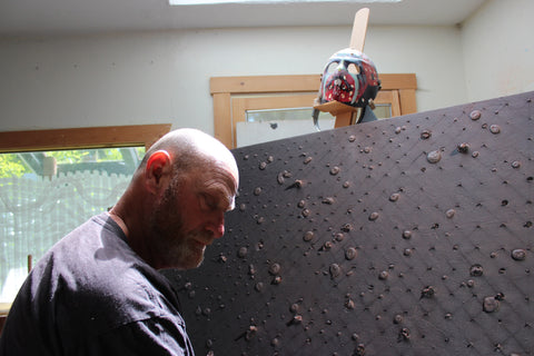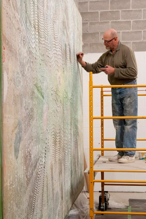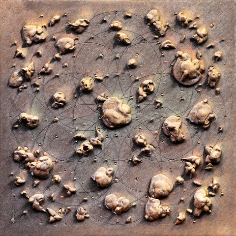 Multifaceted paintings are the result of the blending of contemporary painting concerns with the earthy spiritualism of stone.