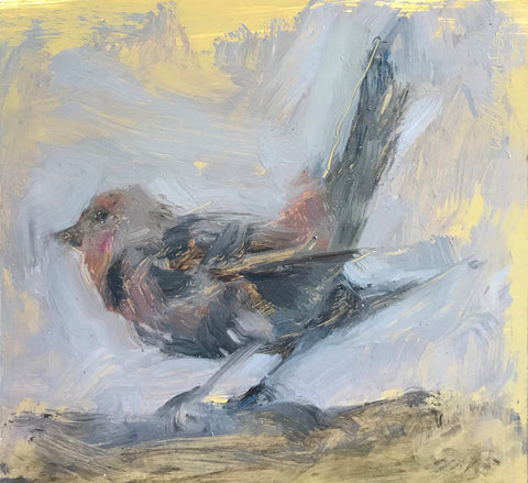 "Poised" - a wonderful name for an exquisite work of art by Salt Spring artist Mel Williamson. This little finch painting reflects graceful self-confidence.