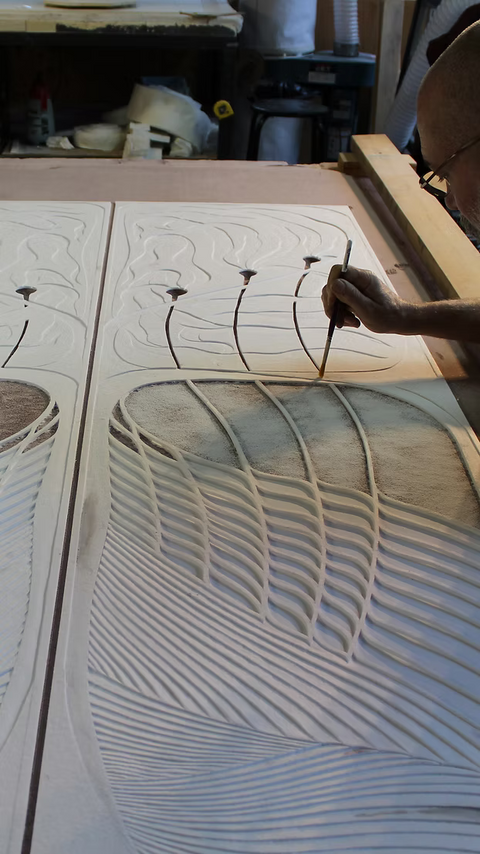 The full size drawing gets transferred onto our mold-making material, which is then cut out and shaped.