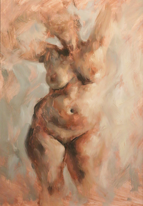 Salt Spring Island painter Mel Williamson creates intimate, gesture-driven oil paintings where figures and forms seem to emerge from shifting light. Working without preliminary drawing, she uses large brushes and palette knives to carve out essential shapes, celebrating the tactile nature of oil paint. Formerly a graphic designer, she now paints full-time, focusing on honest, fleeting moments and the emotional truth within everyday gestures.