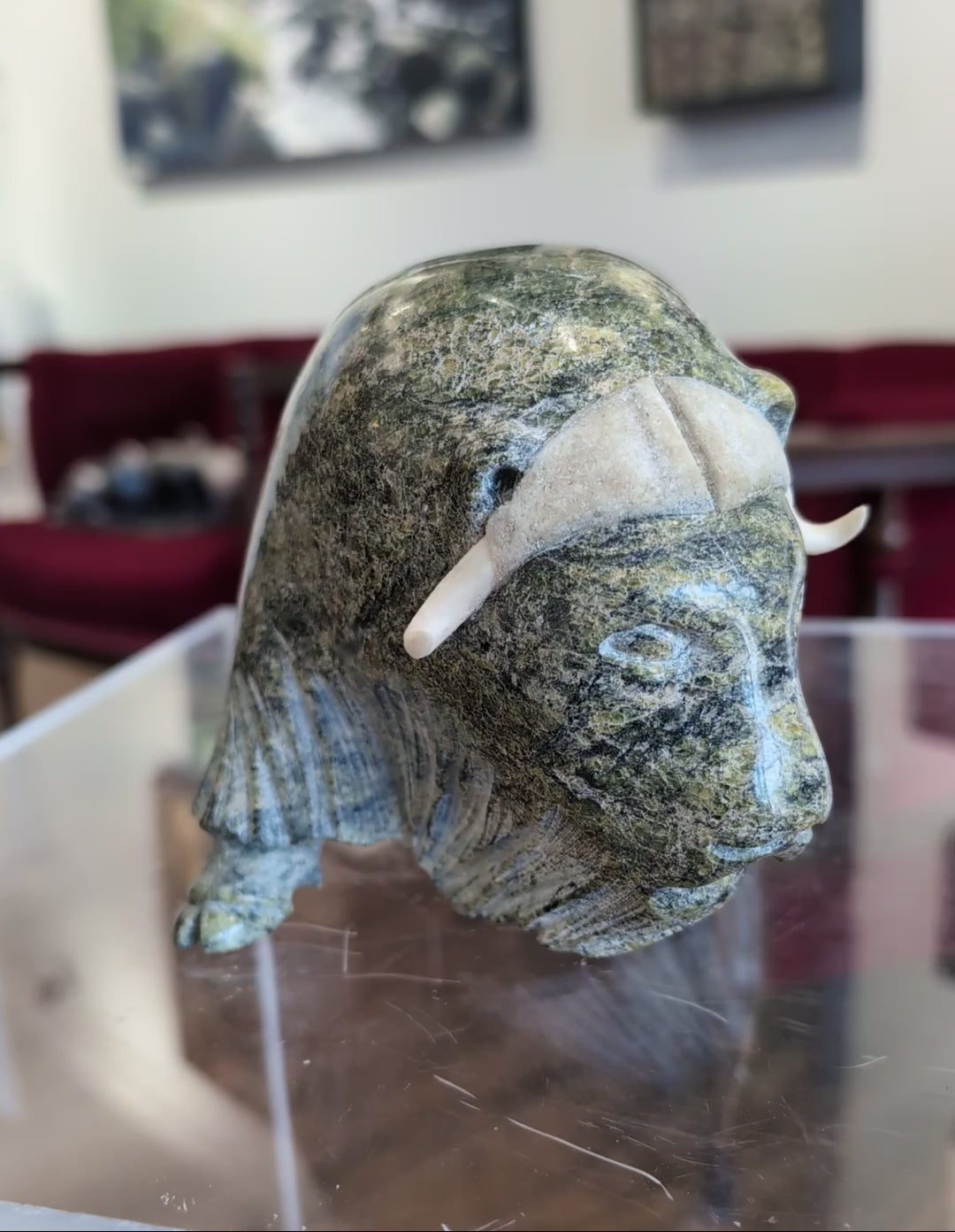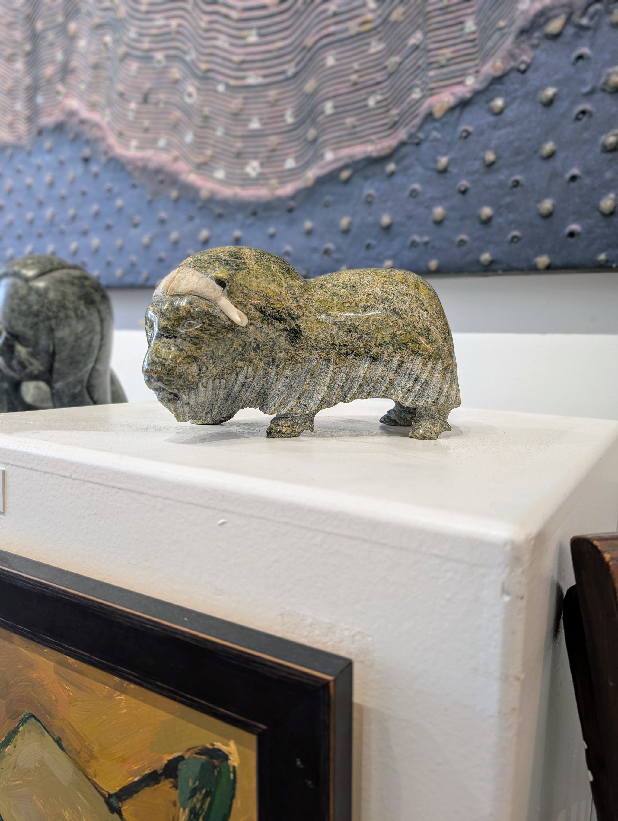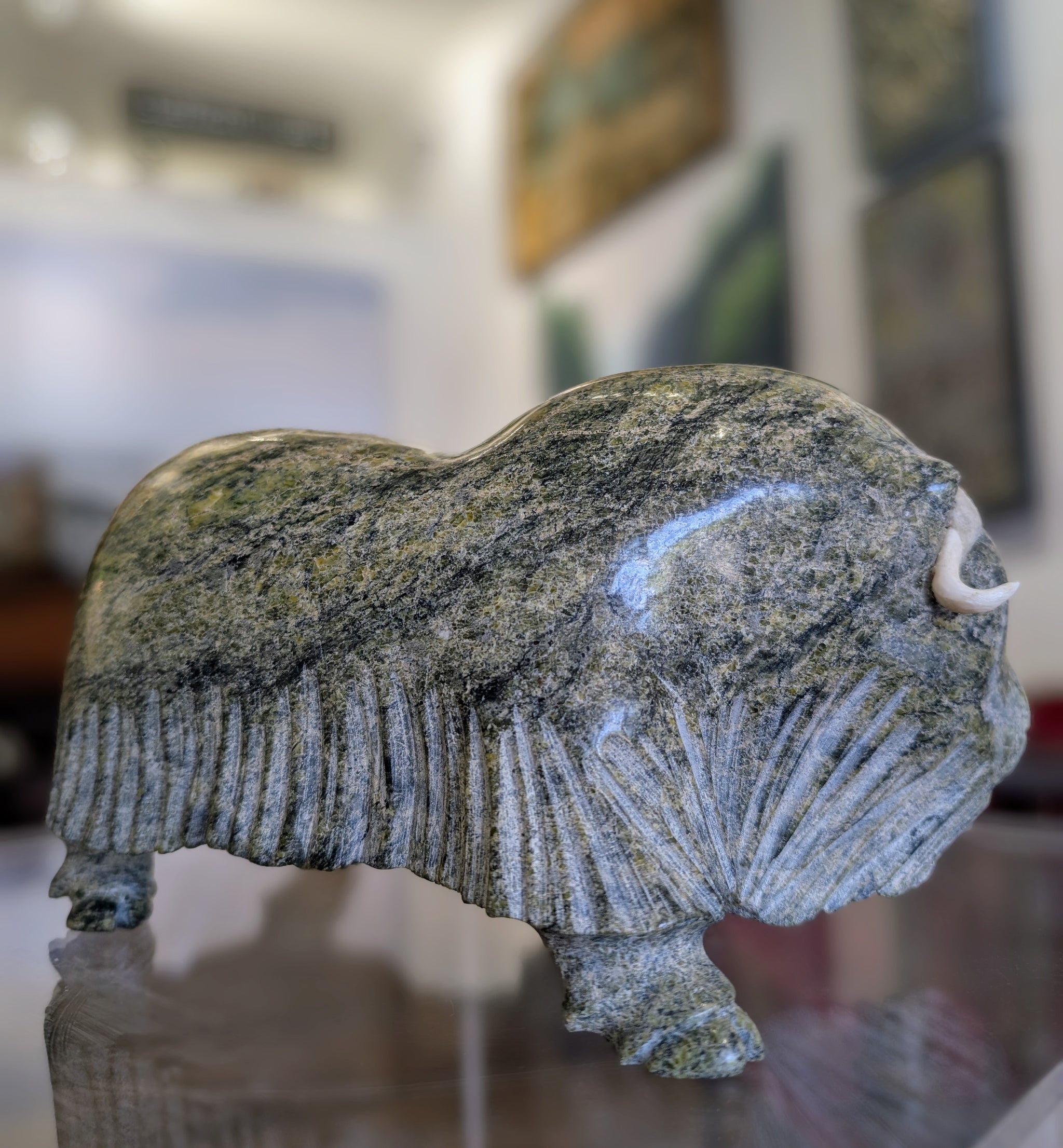 This muskox is more than a sculpture; it's a narrative of survival, strength, and artistry from Canada's northern frontier. Whether you're an avid collector or seeking a statement piece, this work invites contemplation and admiration.