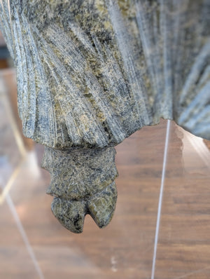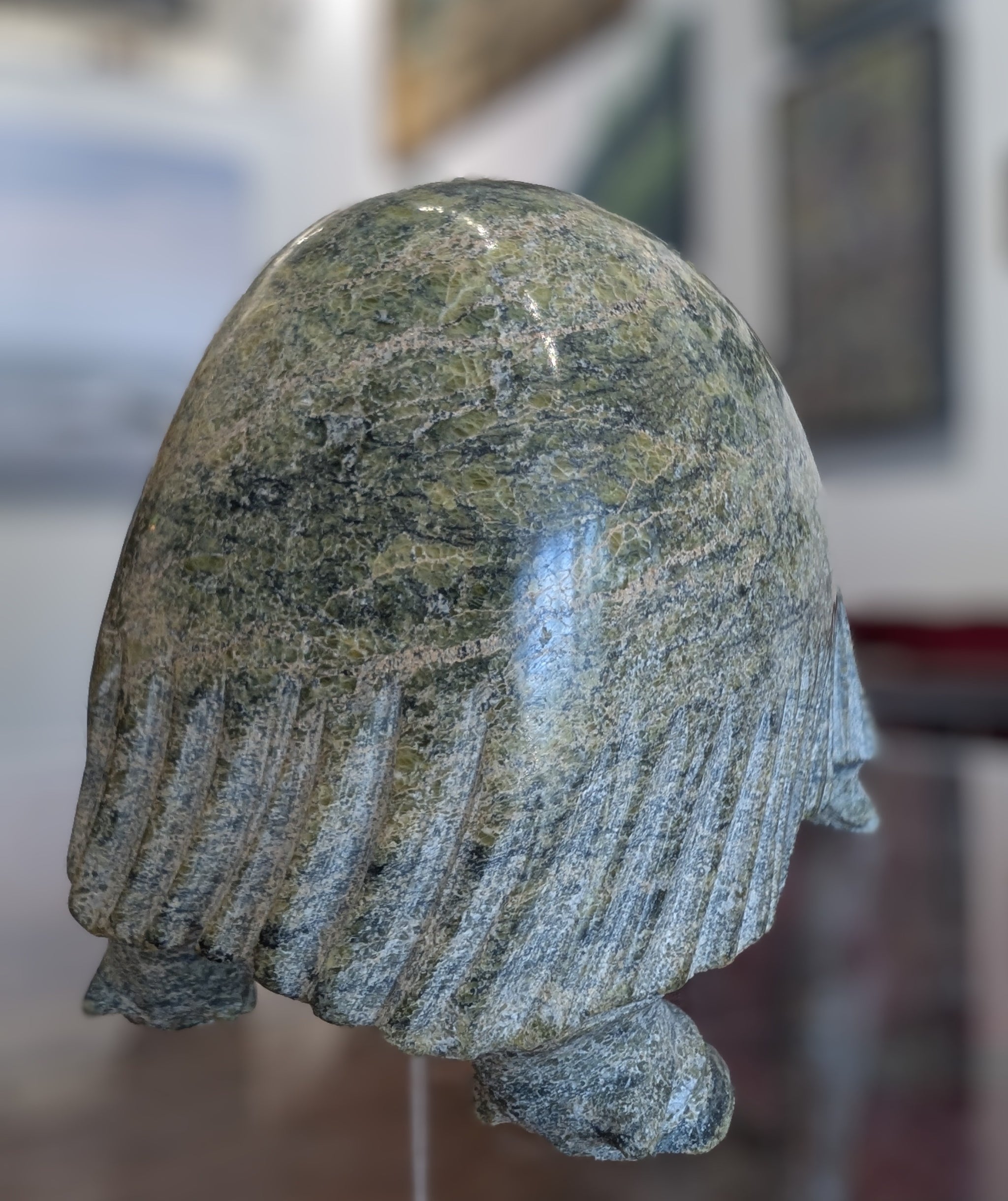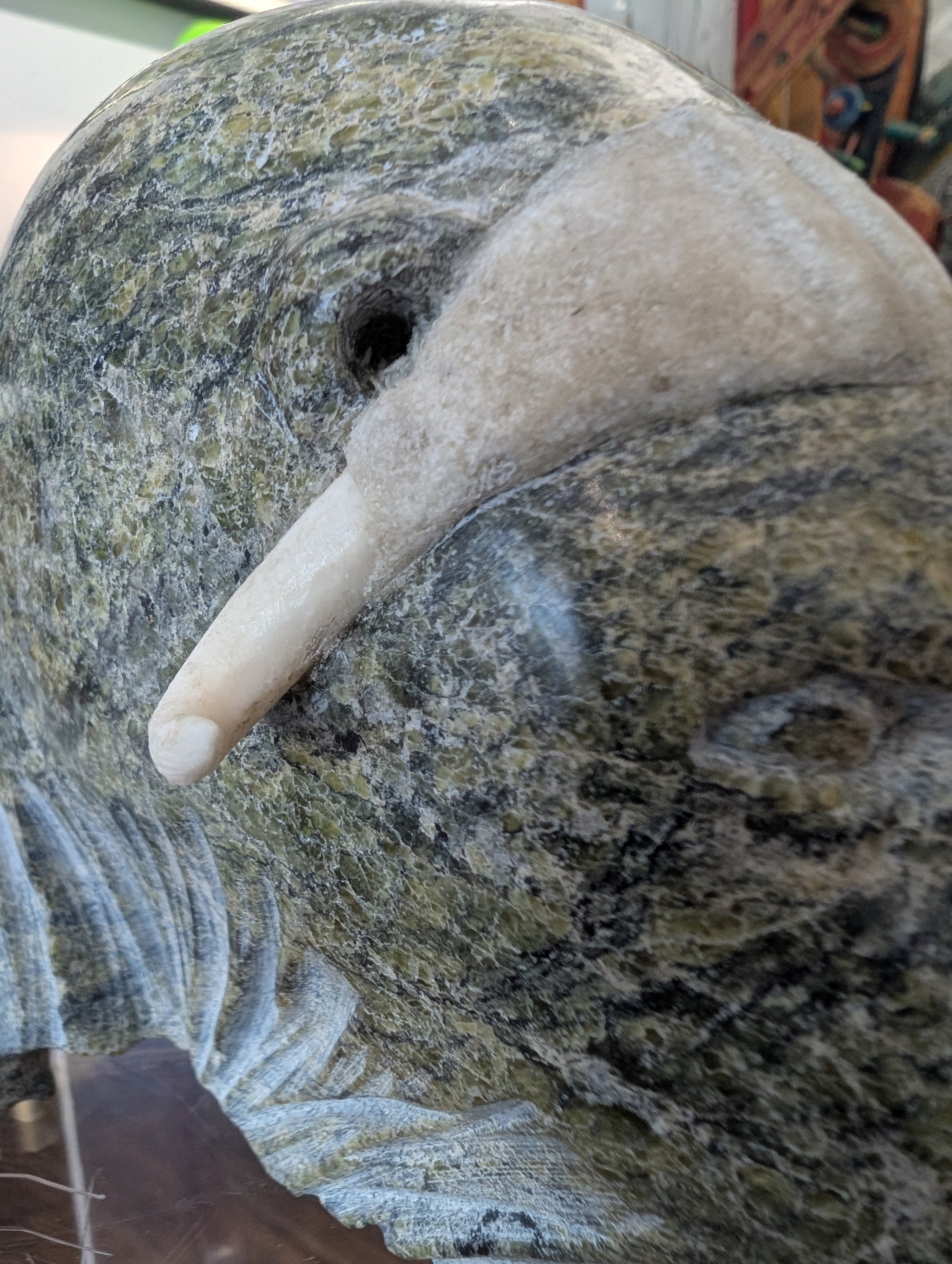 From the remote, windswept shores of Kimmirut comes a sculpture that captures the indomitable spirit of the Arctic. Mathewsie Tikivik, born in 1975, hails from a community renowned for its rich artistic heritage and the unique serpentine stone that lies beneath its tundra. Raised amidst traditional Inuit practices, Tikivik's artistry is deeply rooted in his cultural heritage.