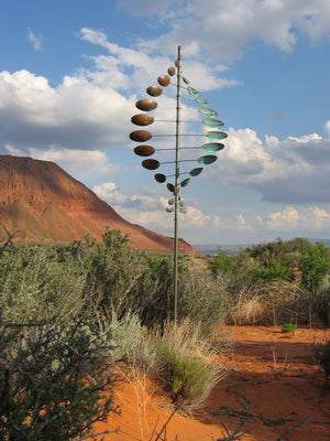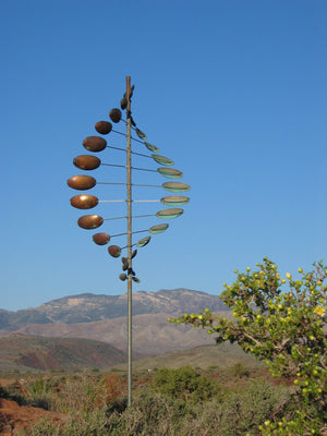 The sculptures are fabricated from copper, steel and stainless steel that provide beauty and strength. Each Wind Sculptureβ„’ is secured against theft and rests on a sealed ball bearing at the top of a vertical rod.Β